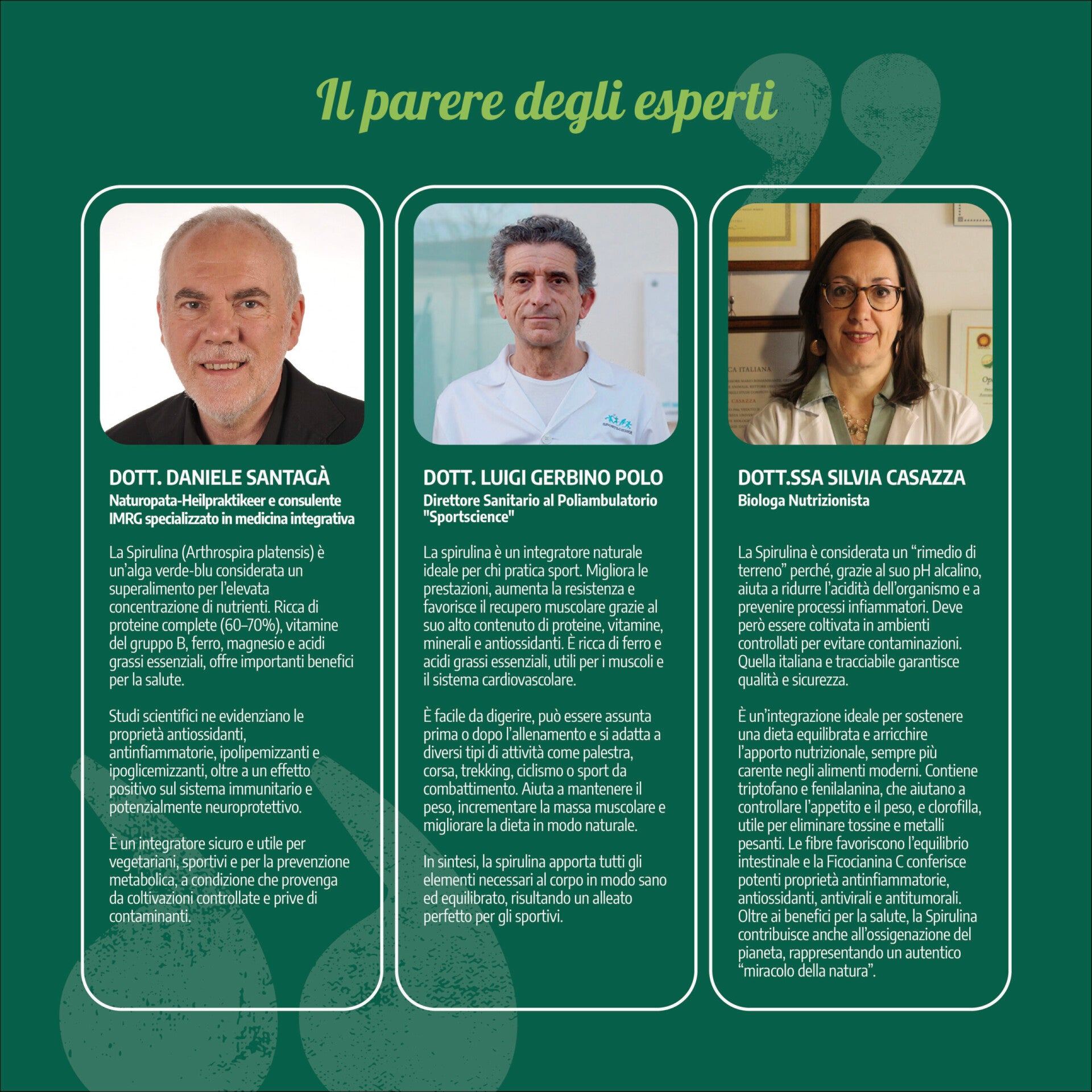 SpirulinaBio formato capsule è pensato per un utilizzo giornaliero. Grazie alle straordinarie proprietà di questo superfood potrai integrare facilmente tutti gli amminoacidi essenziali, le vitamine dei gruppi A, B, C, E, K, gli acidi grassi essenziali Omega 6 e molti sali minerali per dare energia e sostegno al tuo organismo. La nostra spirulina è naturalmente priva di iodio e non contiene eccipienti, additivi o addensanti. Le tecniche di produzione ed il continuo controllo della microalga garantiscono inoltre la totale sicurezza del prodotto e l’assenza di microplastiche.